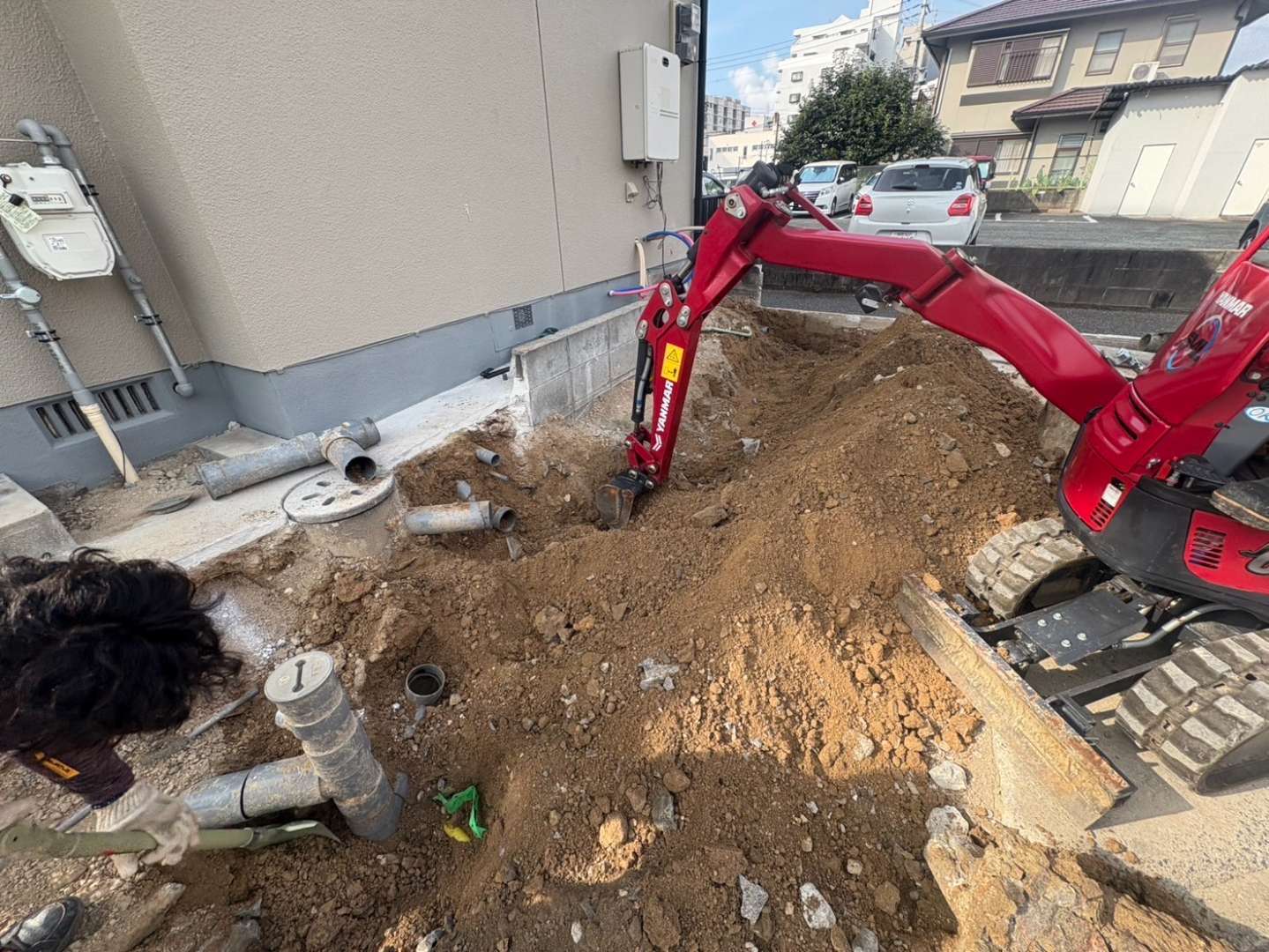 福岡市早良区の住宅では、大雨のたびに駐車場が水浸しになり、排水勾配を修正する工事を行ったことで改善しました。
