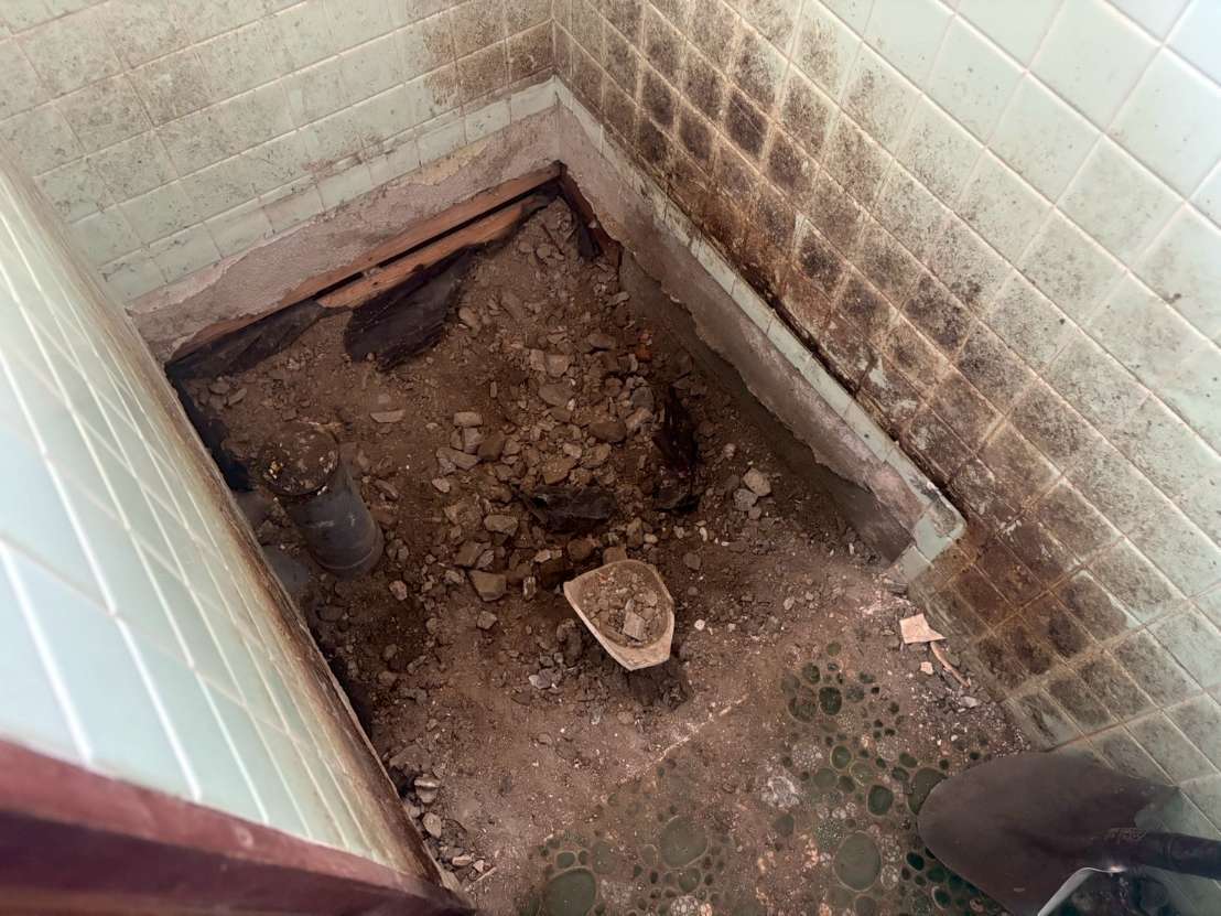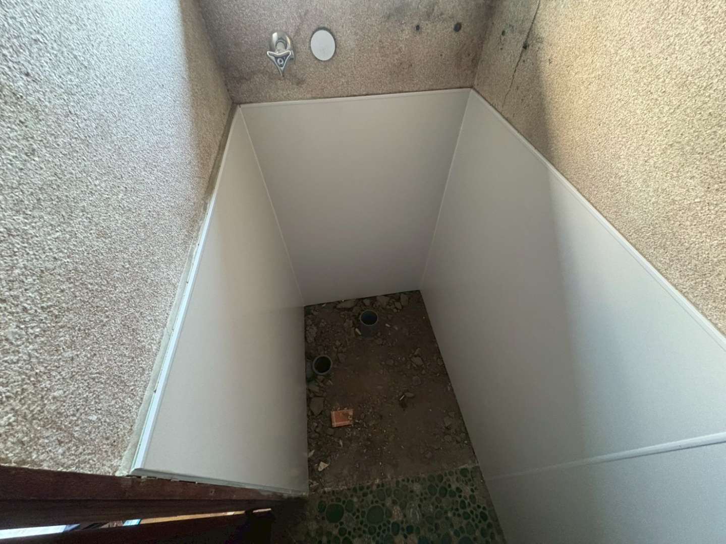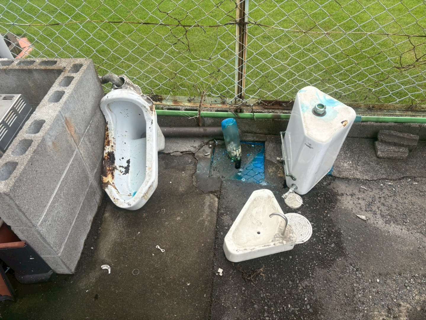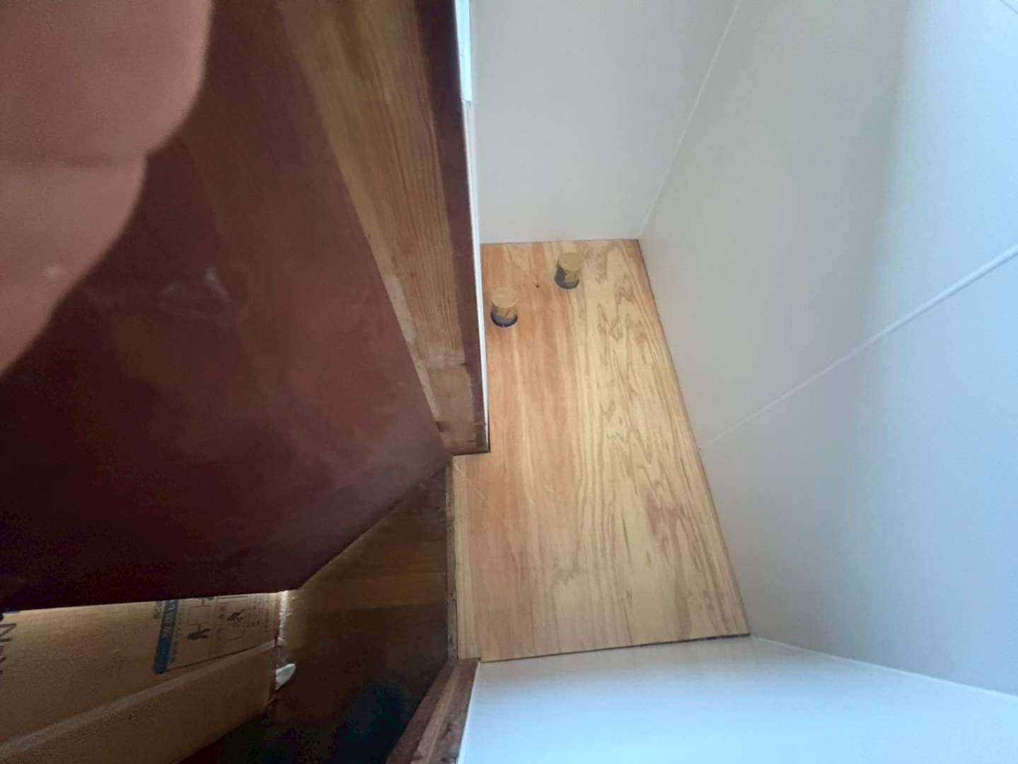 和式トイレ用の配管を洋式トイレ用へ切り替え、併せて簡易的な壁のリフォームと床の張り替え(クッションフロア仕上げ)を実施。