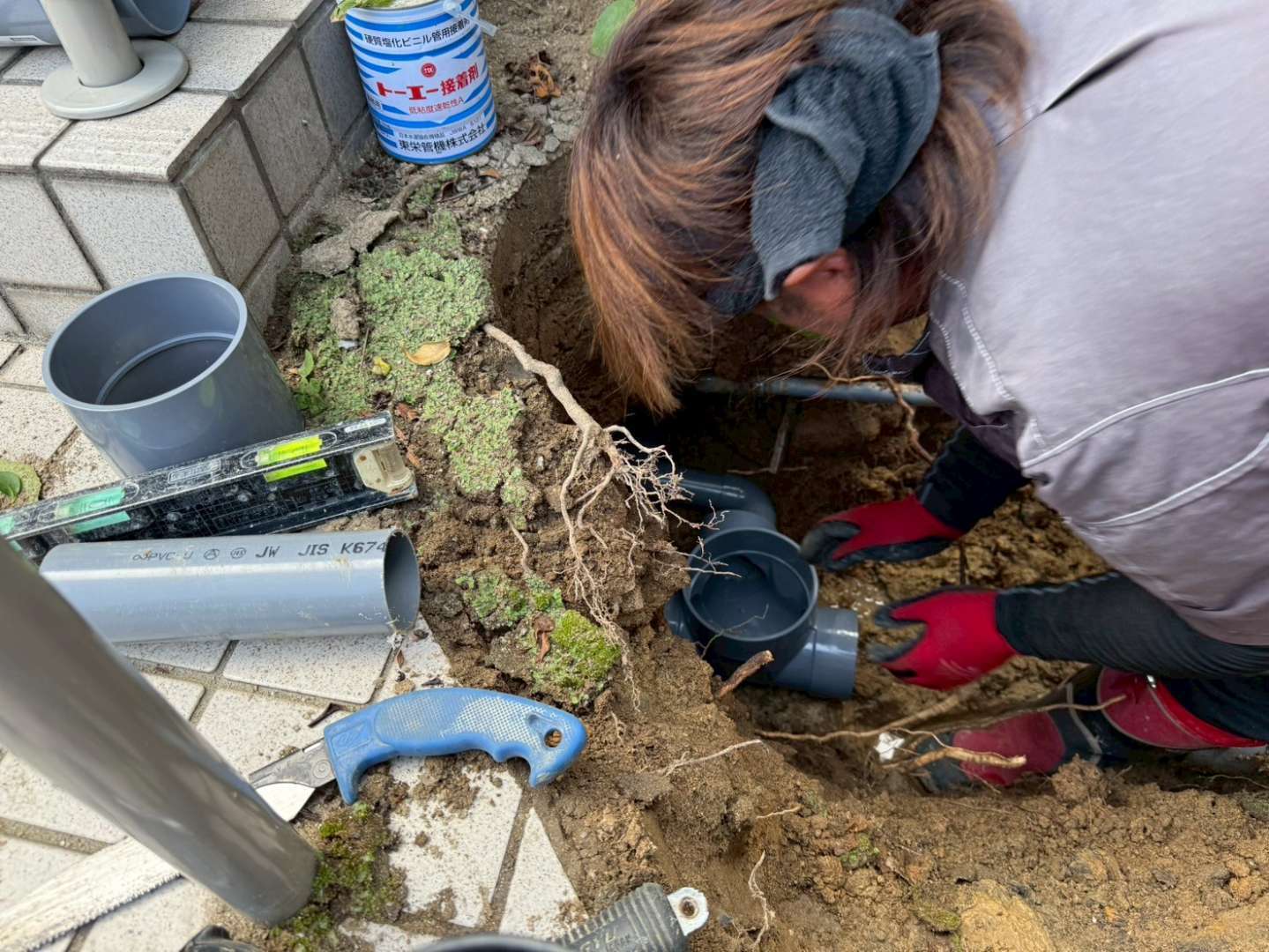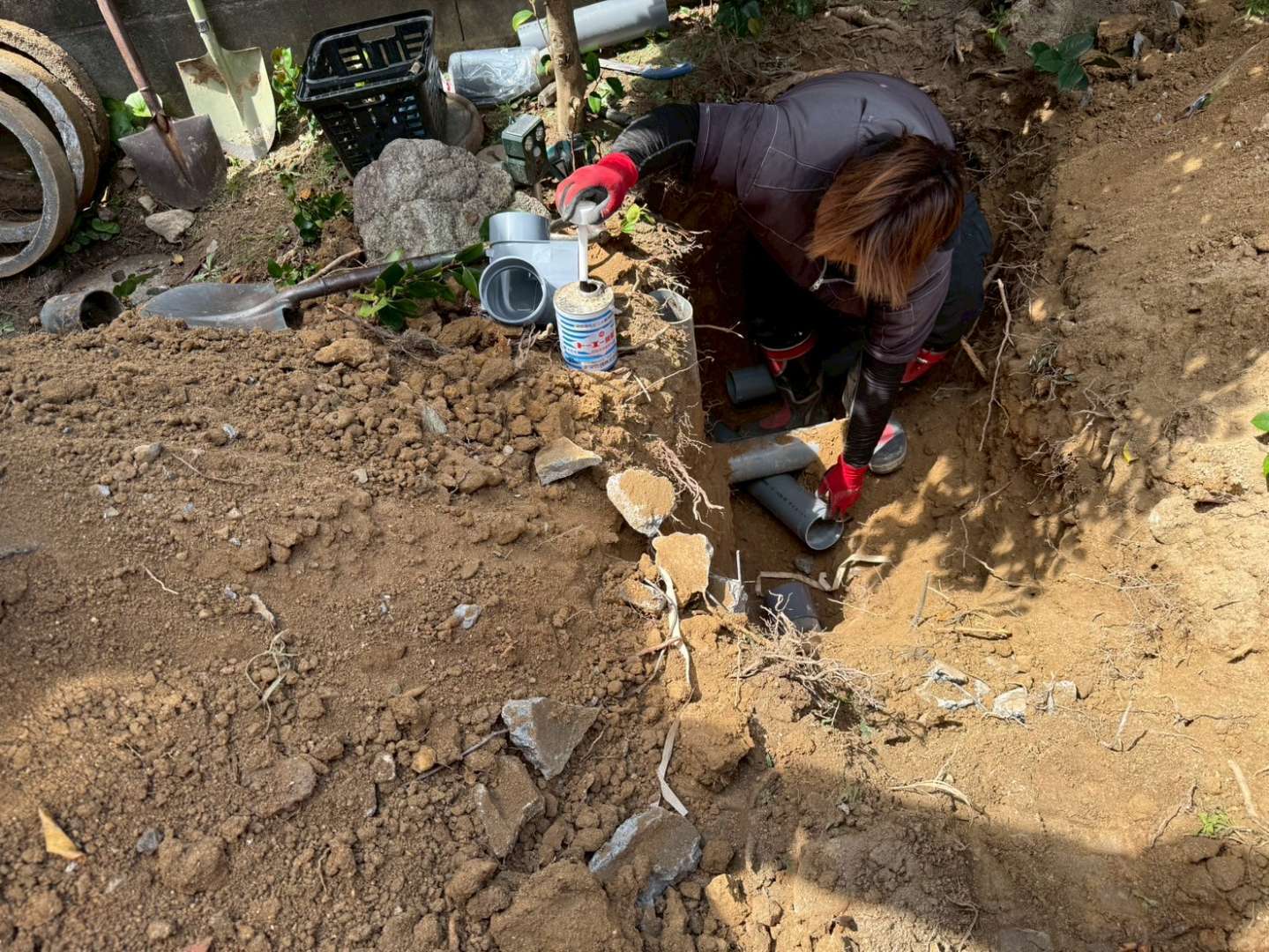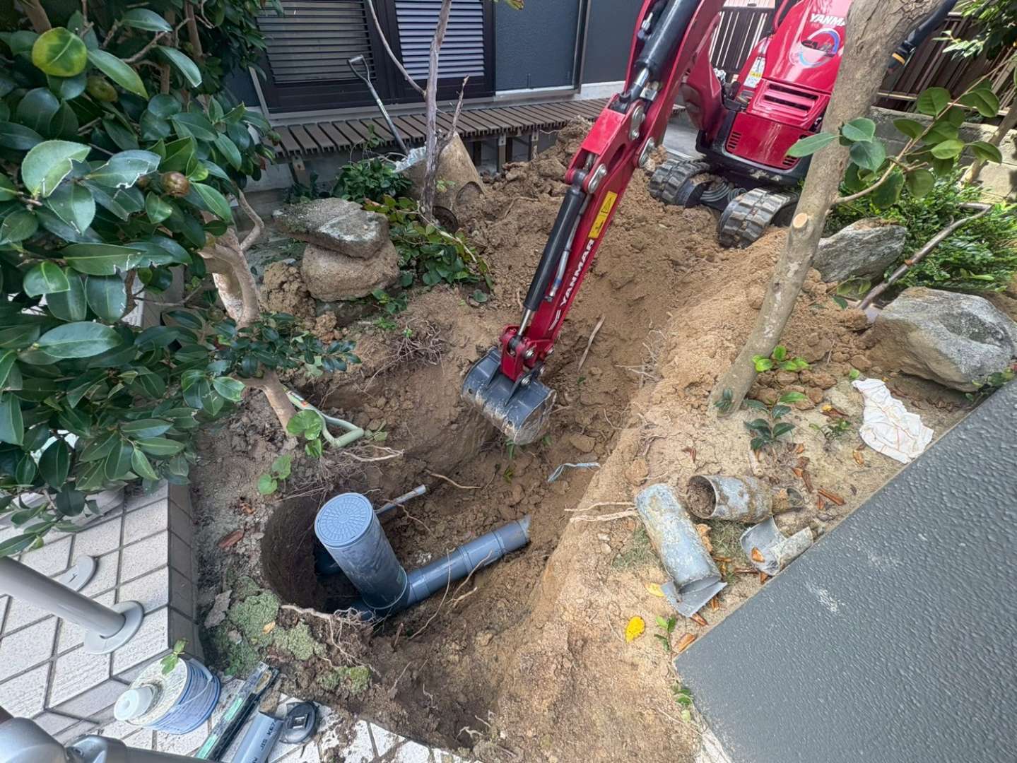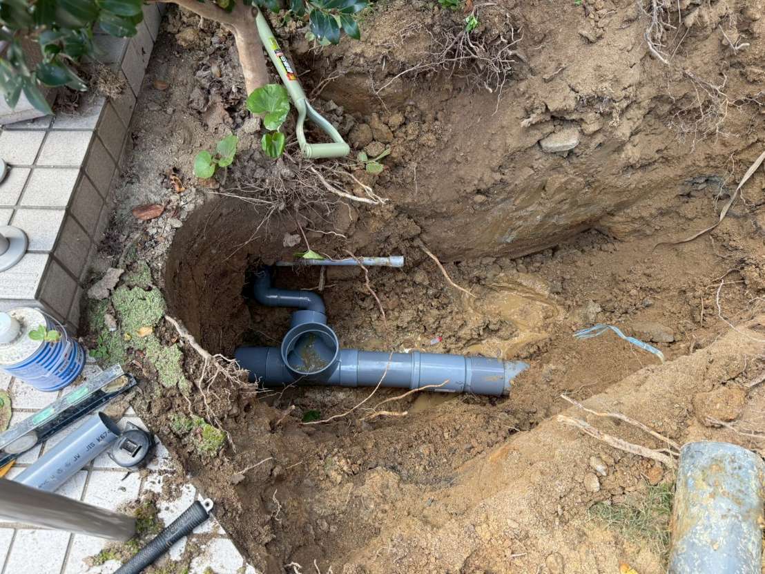 そこで、耐久性に優れた硬質塩化ビニル製の汚水桝へ交換し、その前後の配管も新しく切り替えました。